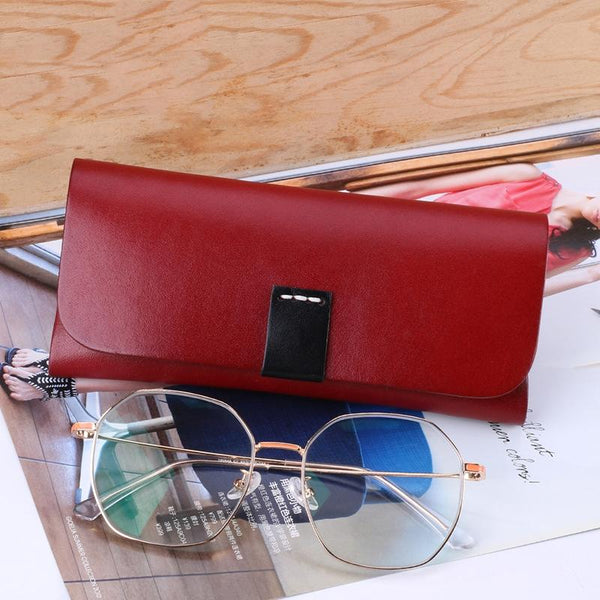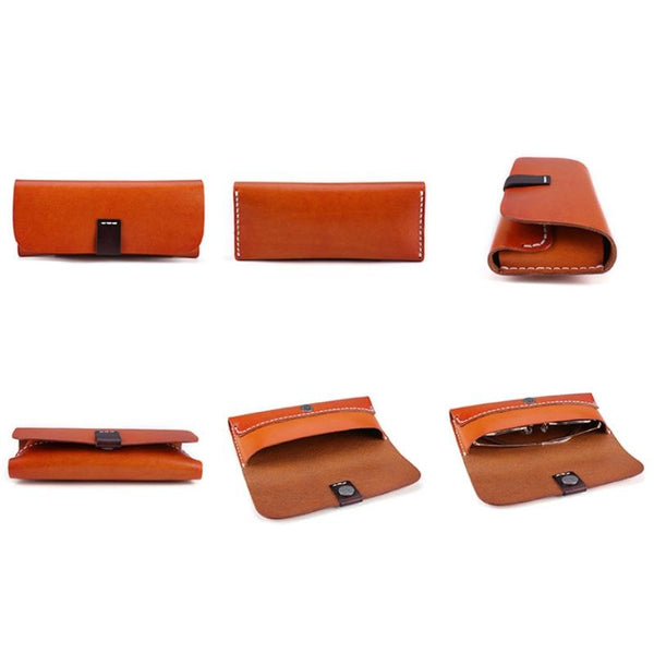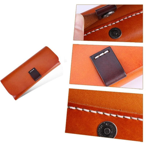 K064 Multifunctional Vegetable Tanned Leather Glasses Storage Box(Dark Coffee)