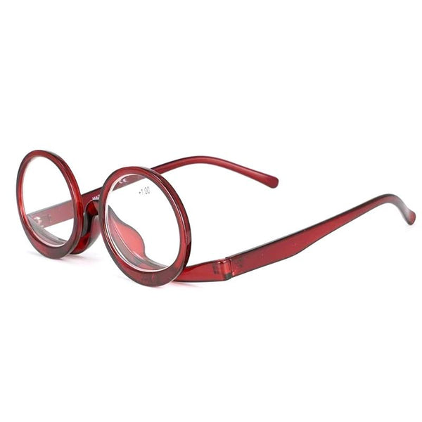 Makeup Magnifying Glass Presbyopic Glasses Flip Swivel Reading Glasses, Degree: +150(Wine Red)