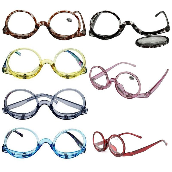 Makeup Magnifying Glass Presbyopic Glasses Flip Swivel Reading Glasses, Degree: +200(Violet Pink)