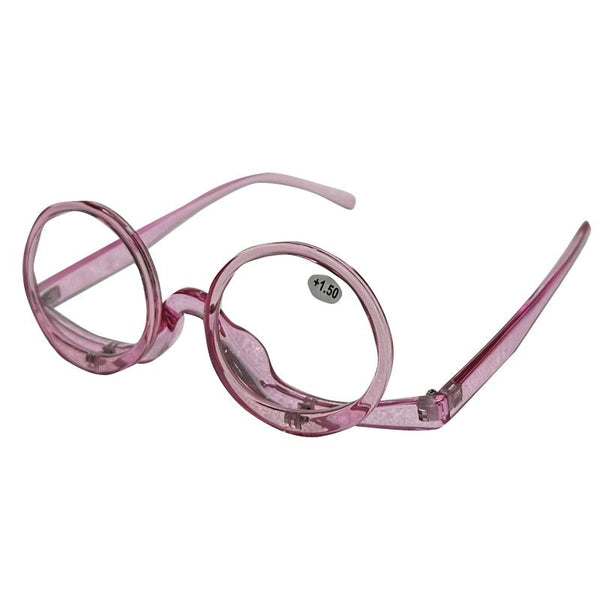 Makeup Magnifying Glass Presbyopic Glasses Flip Swivel Reading Glasses, Degree: +300(Violet Pink)