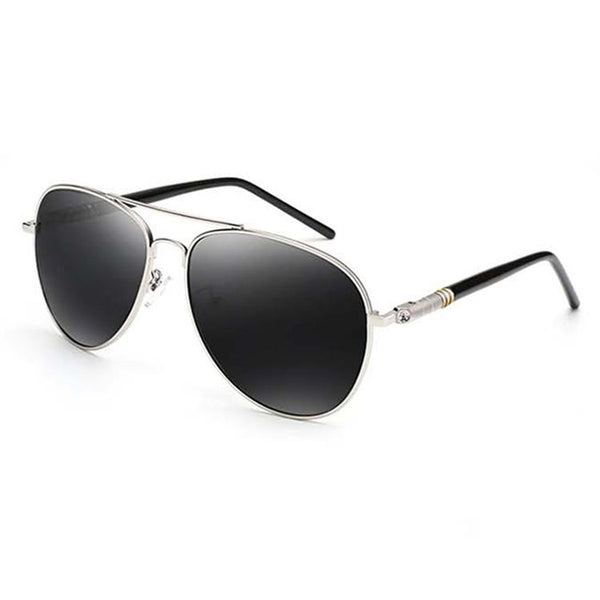 Men Oversized Aviation Metal Frame Spring Temple Polarized Sunglasses MalePilot Male Driving Sun Glasses(Silver Frame)