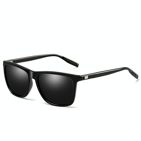 Men Retro Fashion Aluminum Magnesium Frame UV400 Polarized Sunglasses(Black + Grey)