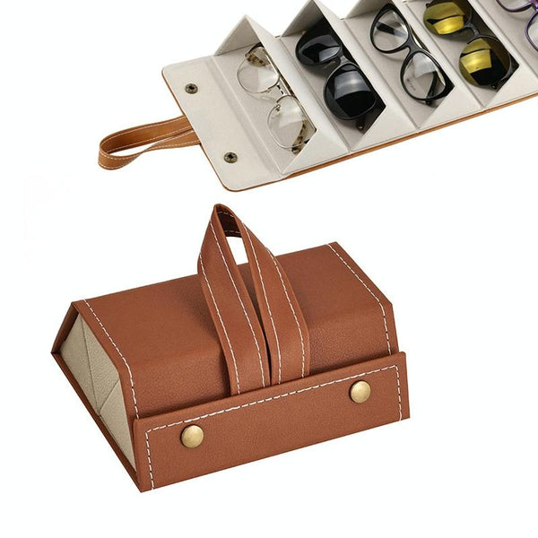 Multifunctional Jewelry Glasses Storage Box Small Grain PU Leather Handmade Glasses Case,Model: L6402 (Brown)