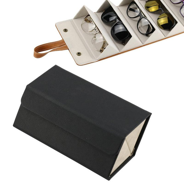 Multifunctional Jewelry Glasses Storage Box Small Grain PU Leather Handmade Glasses Case,Model: L6403 (Black)