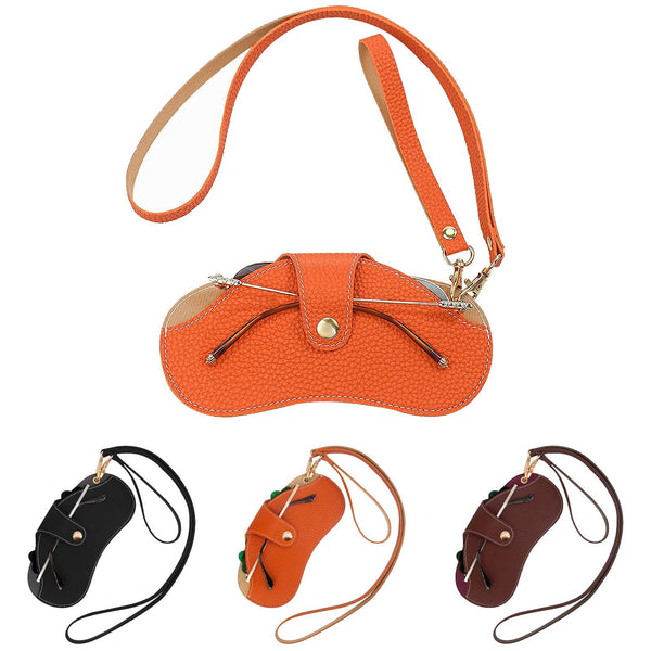 Portable Anti-Scratch And Wear-Resistant PU Leather Eyeglasses Bag Sunglasses Storage Case, Style: Neck Strap+Handle Model Orange