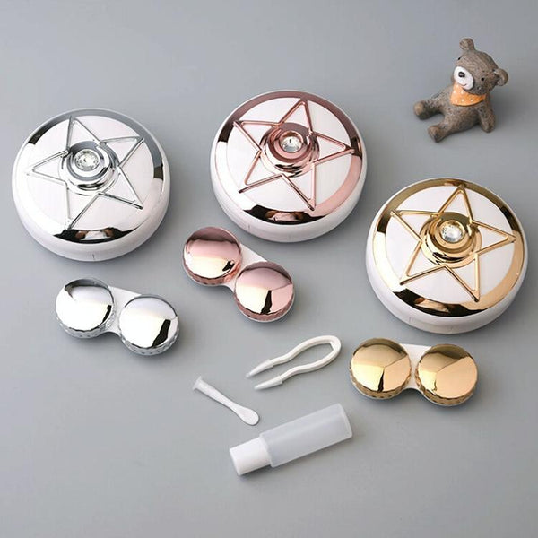 Portable Beauty Lens Care Double Box Contact Lens Case(Rose Red)