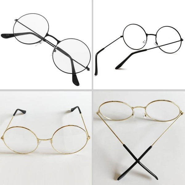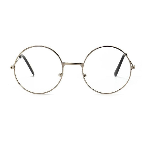 Retro Large Round Eyeglasses Metal Frame Anti Blue-ray Plain Glass Spectacles(Silver)