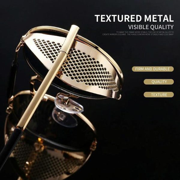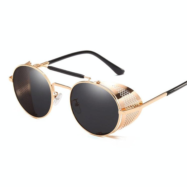 Retro Round Metal Sunglasses Unisex Design UV Protection Glasses(Gold+Grey)