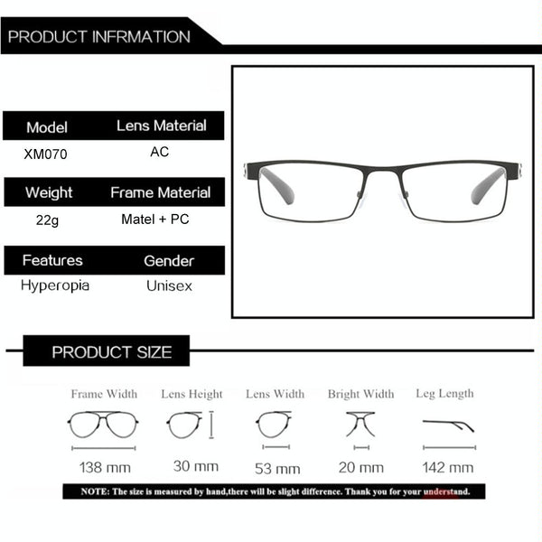 Simple Matel Frame Reading Glasses Hyperopia Eyeglasses +1.00D(Matte Black)