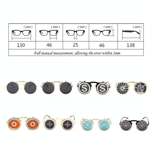1. These glasses incorporate steampunk style features, such as retro metal frames and decorative patterns, showing a unique retro industrial feel.
