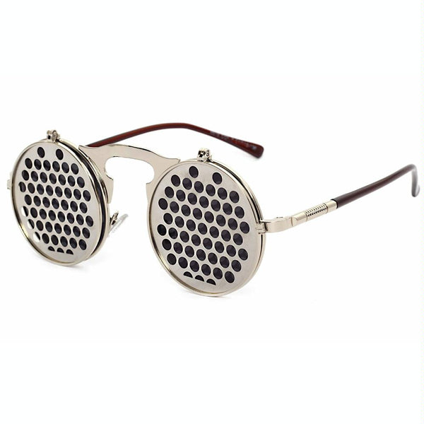 Steampunk Sunglasses Round Metal Flip Up Glasses For Men and Women, Style: Silve Hole C10