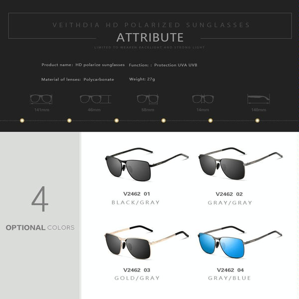 Vintage Square Sunglasses Male UV400 Polarized Lens Sun Glasses(Gray+Blue)