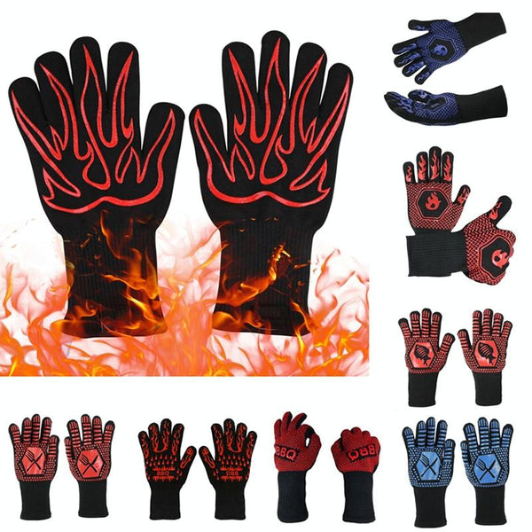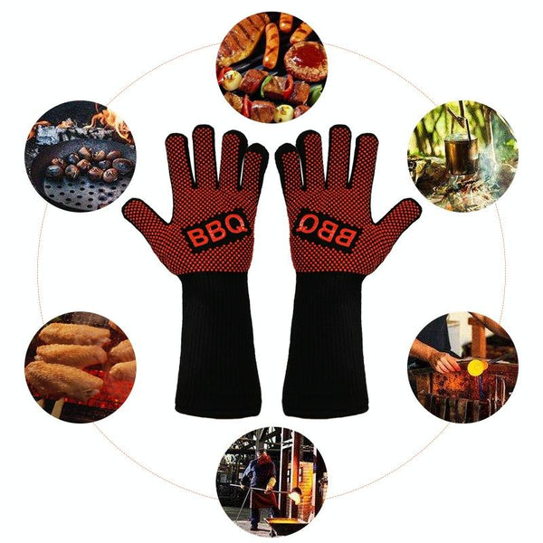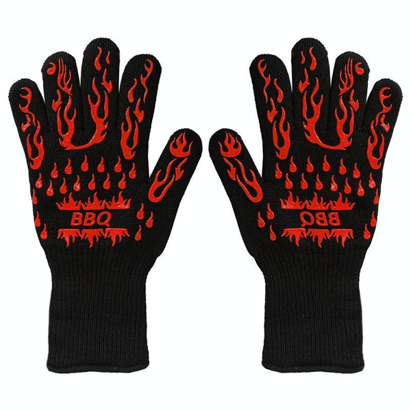 1 Pair High Temperature Resistant Silicone BBQ GlovesAnti-Scalding Gloves(BBQ Flame Red)