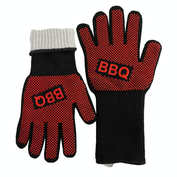 1 Pair High Temperature Resistant Silicone BBQ Gloves Anti-Scalding Gloves(BBQ Red)