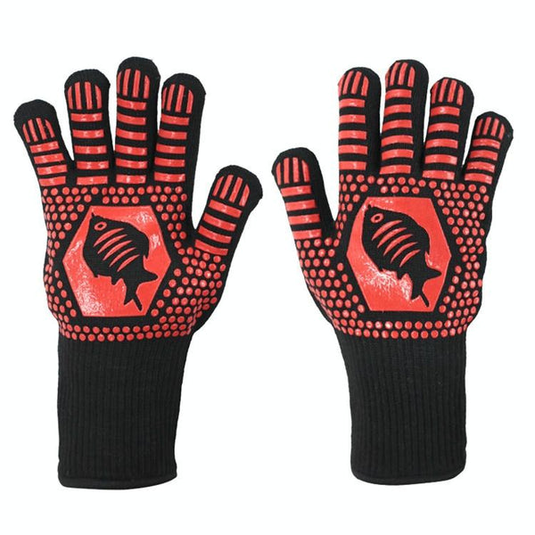 1 Pair High Temperature Resistant Silicone BBQ GlovesAnti-Scalding Gloves(Fish Bone Red)