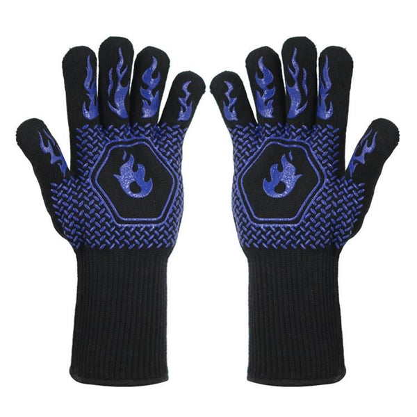 1 Pair High Temperature Resistant Silicone BBQ GlovesAnti-Scalding Gloves(Middle Flame Blue)