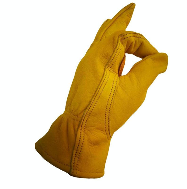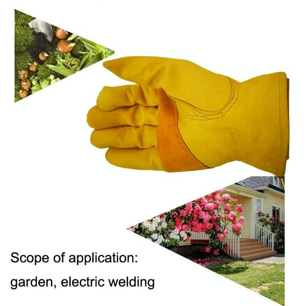 1 Pair JJ-1004 Outdoor Garden Welding Genuine Leather Labor Safety Gloves, Size: L(Yellow)