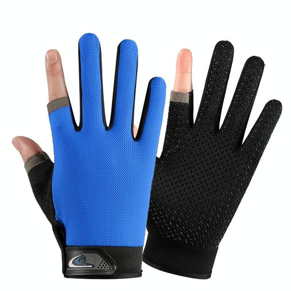 1 Pair QX0008 Outdoor Sunscreen Non-Slip Exposed Two-Finger Fishing Gloves, Size: Free Size(Blue)