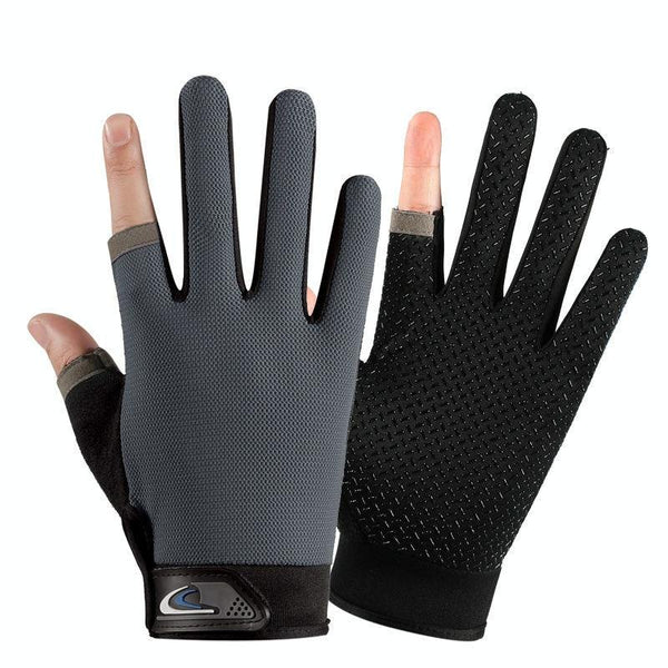 1 Pair QX0008 Outdoor Sunscreen Non-Slip Exposed Two-Finger Fishing Gloves, Size: Free Size(Grey)