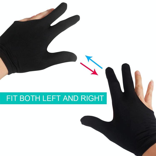 The three-finger billiard glove will give you a smoother stroke, better game and eliminate the need for sweaty hand.