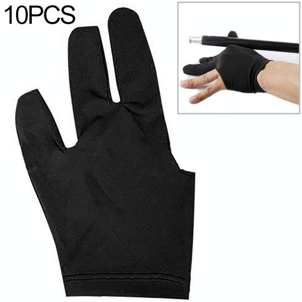 10 PCS Spandex Snooker Billiard Cue Glove Pool Left Hand Open Three Finger Snooker Accessory(Black)