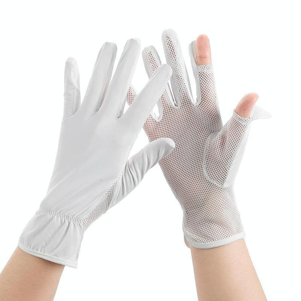 1pair Summer Sunscreen Breathable Thin Anti-ultraviolet Finger Fishing Ice Silk Gloves Free Size(Ivory White)