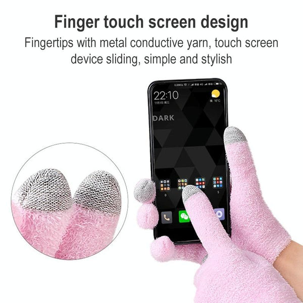 2 PCS Feather Yarn Touch Screen Gloves Outdoor Full Finger Gloves(Pink)