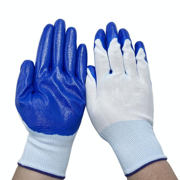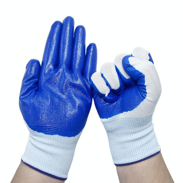 2pcs /Pair Work Safety Gloves Abrasion And Oil Resistant Nitrile Half Rubber Gloves(White And Blue Without Words)