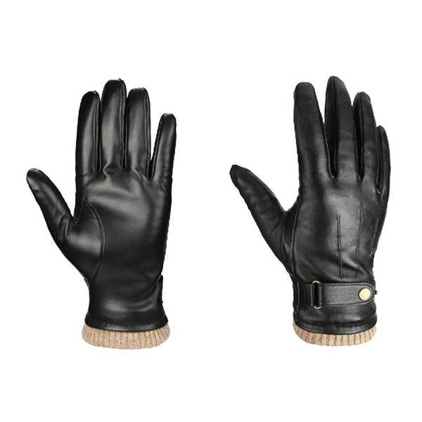 Autumn And Winter Padded Leather Gloves Business Simple Outdoor Sports Warm Gloves, Size: L(Black)