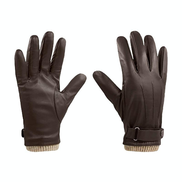 Autumn And Winter Padded Leather Gloves Business Simple Outdoor Sports Warm Gloves, Size: S(Brown)