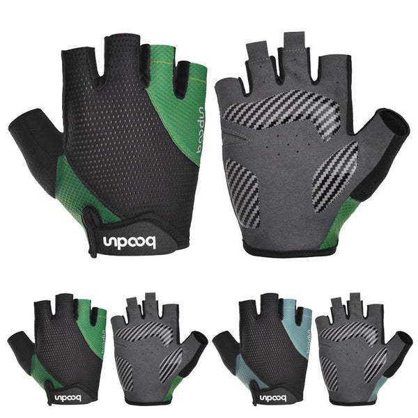 BOODUN 1408 4D Silicone Shock Absorbing Half Finger Breathable Bicycle Outdoor Riding Gloves, Size:L(Black and Blue)