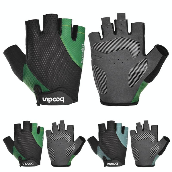 BOODUN 1408 4D Silicone Shock Absorbing Half Finger Breathable Bicycle Outdoor Riding Gloves, Size:XL(Black and Green)