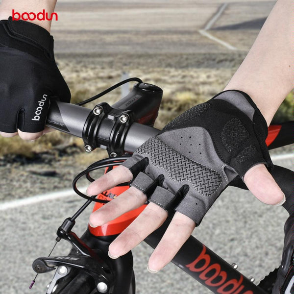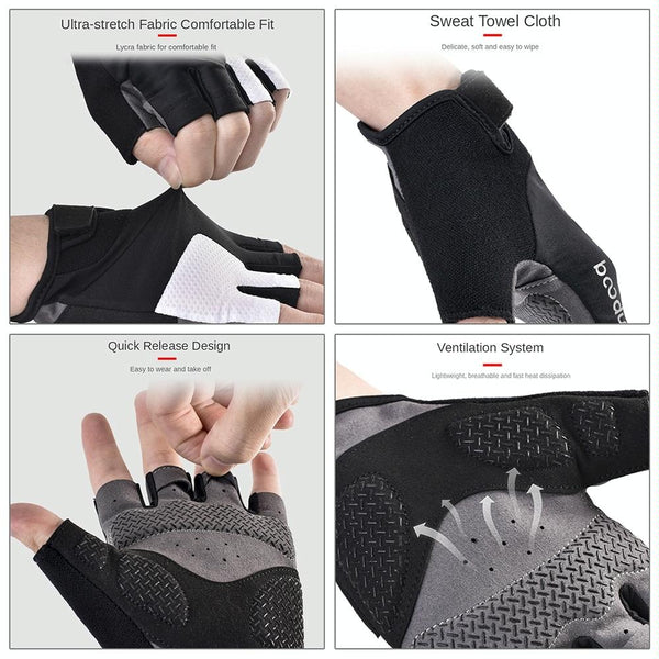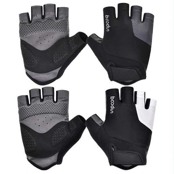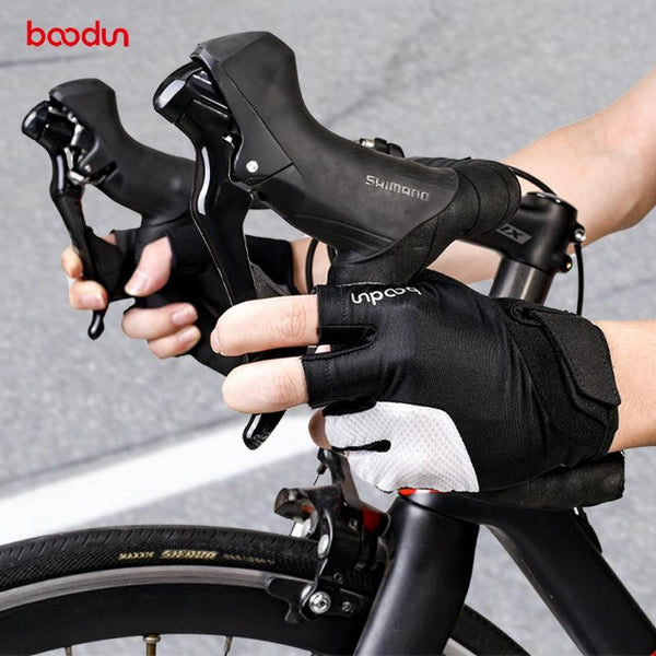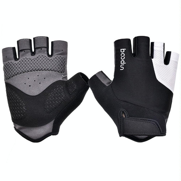 BOODUN Non-slip Half Finger Shock Absorption Breathable Heat Dissipation Outdoor Riding Gloves, Size:M(Black and White)