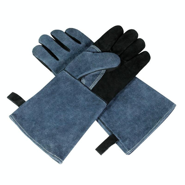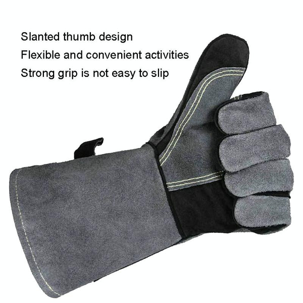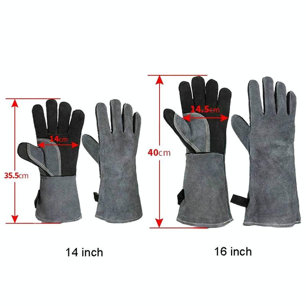 Cowhide BBQ Gloves Thickened Anti-hot Oven Welding Protection Gloves, Specification: A2416 14 inch Gray Black