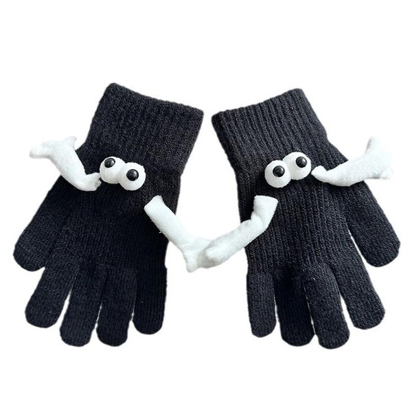 Fall Winter Couple Students Magnetic Warm Gloves Cute Dolls Outdoor Hand In Hand Mittens, Size: Average(Black)