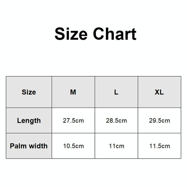 9. Dimensions: M: 10.5 x 27.5 cm, L: 11 x 28.5 cm, XL: 11.5 x 29.5 cm