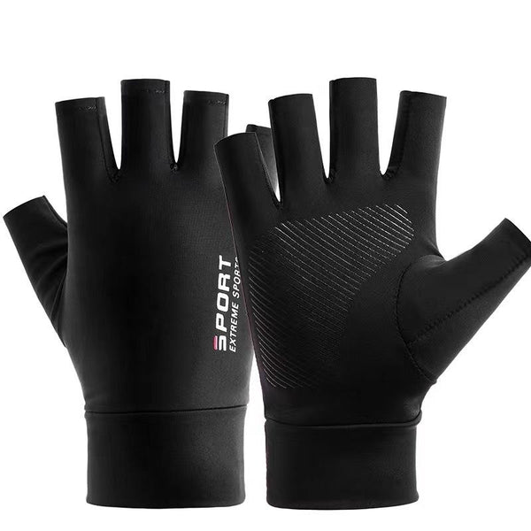 Free Code Summer Ice Silk Thin Sunscreen Gloves Fishing Non-slip Takeaway Rider Gloves(Half Finger Black)