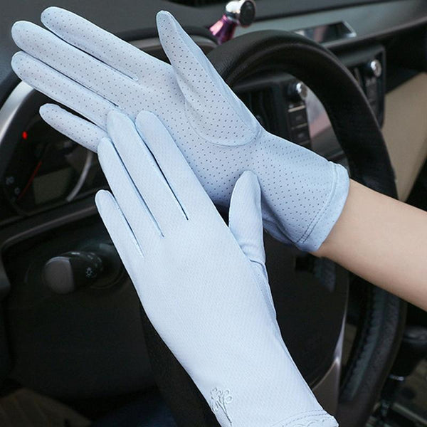 Free Code Summer Sunscreen Anti-ultraviolet Ice Silk Thin Gloves(Blue)