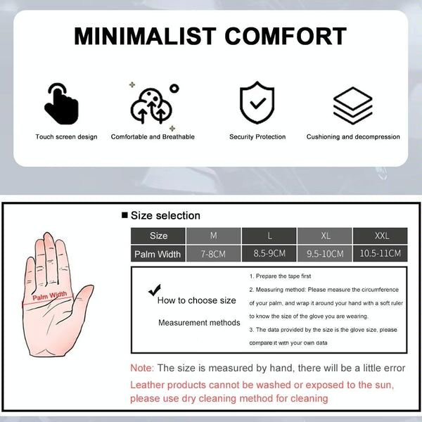 7. Palm width size: M 7-8cm; L 8.5-9cm; XL9.5-10cm; XXL10.5-11cm