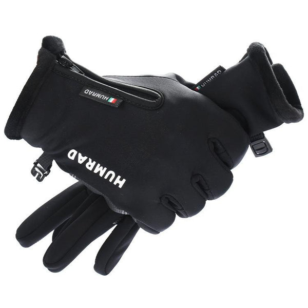 HUMRAO Outdoor Riding Gloves Winter Velvet Thermal Gloves Ski Motorcycle Waterproof Non-Slip Gloves, Size: M(Black)