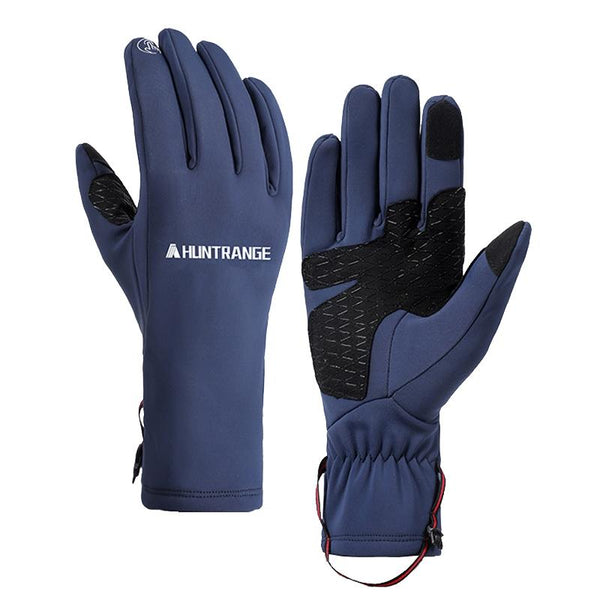HUNTRANGE A037 Plus Velvet Sports Windproof Waterproof Touch Screen Riding Gloves, Size: L(Navy)