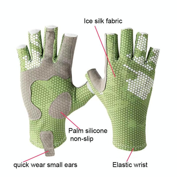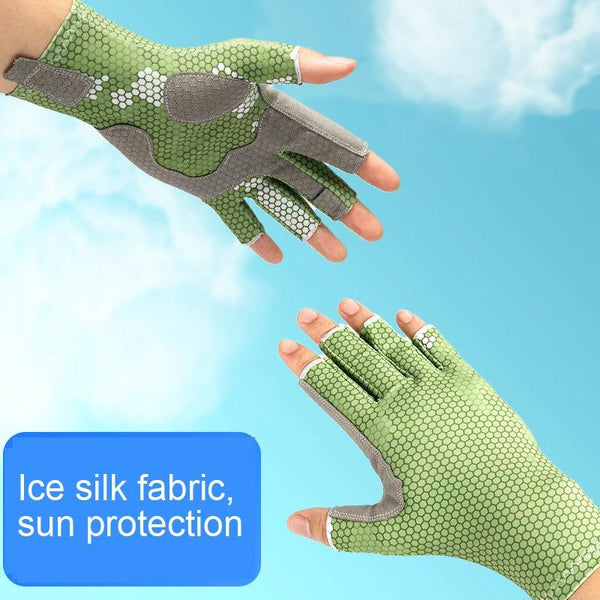 Ice Silk Half Finger Fishing Gloves SunscreenRiding Gloves, Size:L/XL (Youth Green)