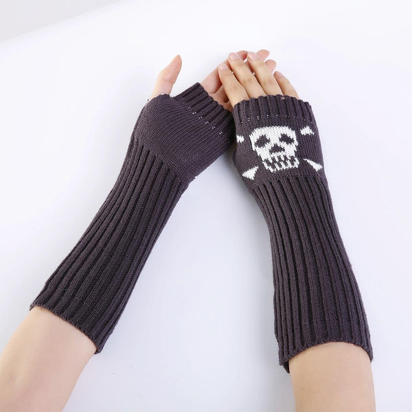 Jacquard Skull Fingerless Warm Gloves Knit Ski Gloves(Deep Gray)