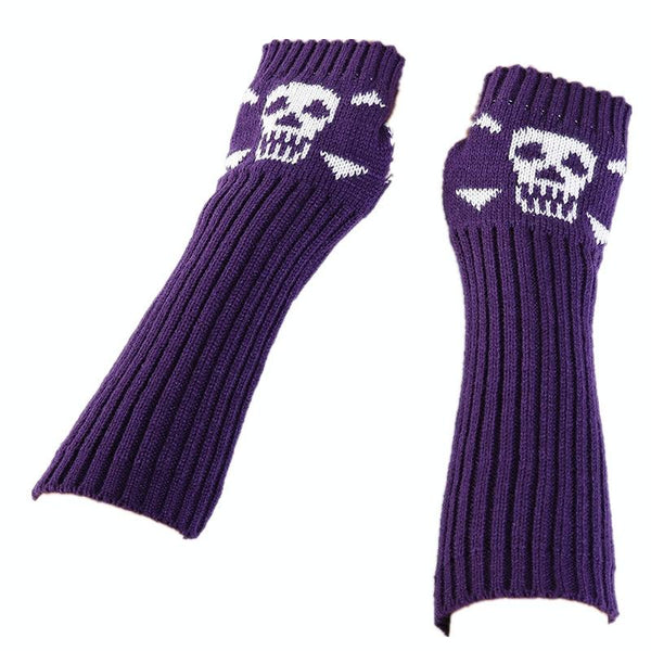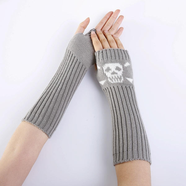 Jacquard Skull Fingerless Warm Gloves Knit Ski Gloves(Shallow Gray)