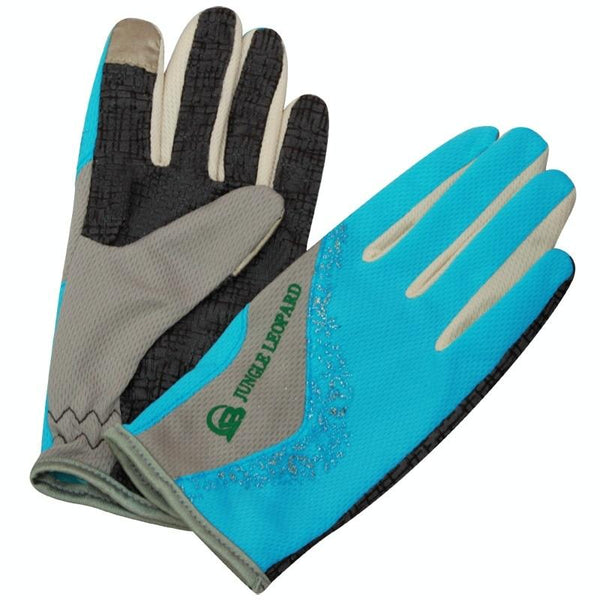 JUNGLE LEOPARD Outdoor Sports Mountaineering Full Finger Gloves Mesh Touch Screen Anti-Skid Gloves, Size: L(Lake Blue+Gray)