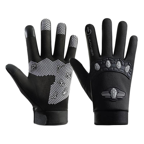 LANYIER Fall Winter Men Outdoor Motorcycle Gloves Riding Warm Windproof Anti-Slip Waterproof Touch Screen Gloves, Size: Average(Gray)