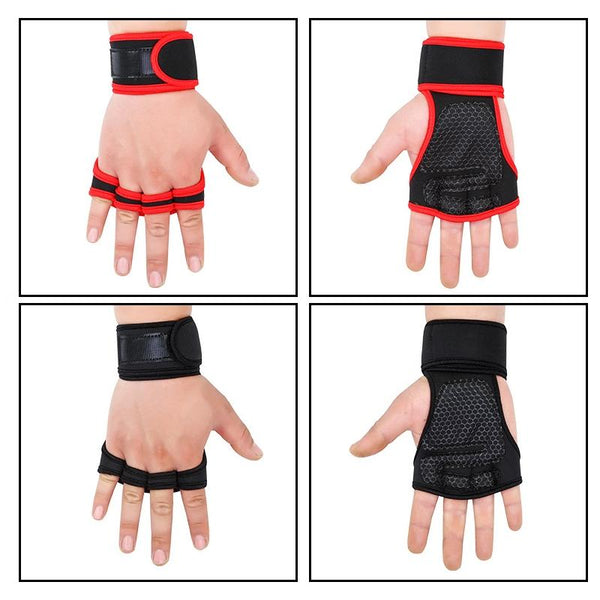 M Weightlifting Dumbbell Horizontal Bar Anti-cocoon Anti-slip Wrist Fitness Four-finger Gloves(Red)