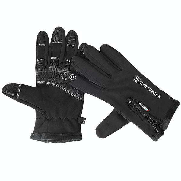 Outdoor Riding Windproof Cold-proof Zipper Gloves, Size: XL(Black)