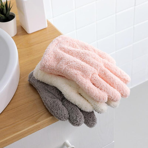 Singe Fast Dry Hair Gloves Quick Drying Coral Velvet Absorbent Gloves(White)