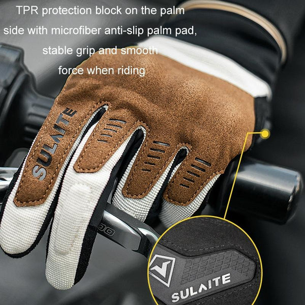 SULAITE Motorcycle Riding Breathable Conductive Touch Screen Full Finger Gloves, Size: L(Khaki)
